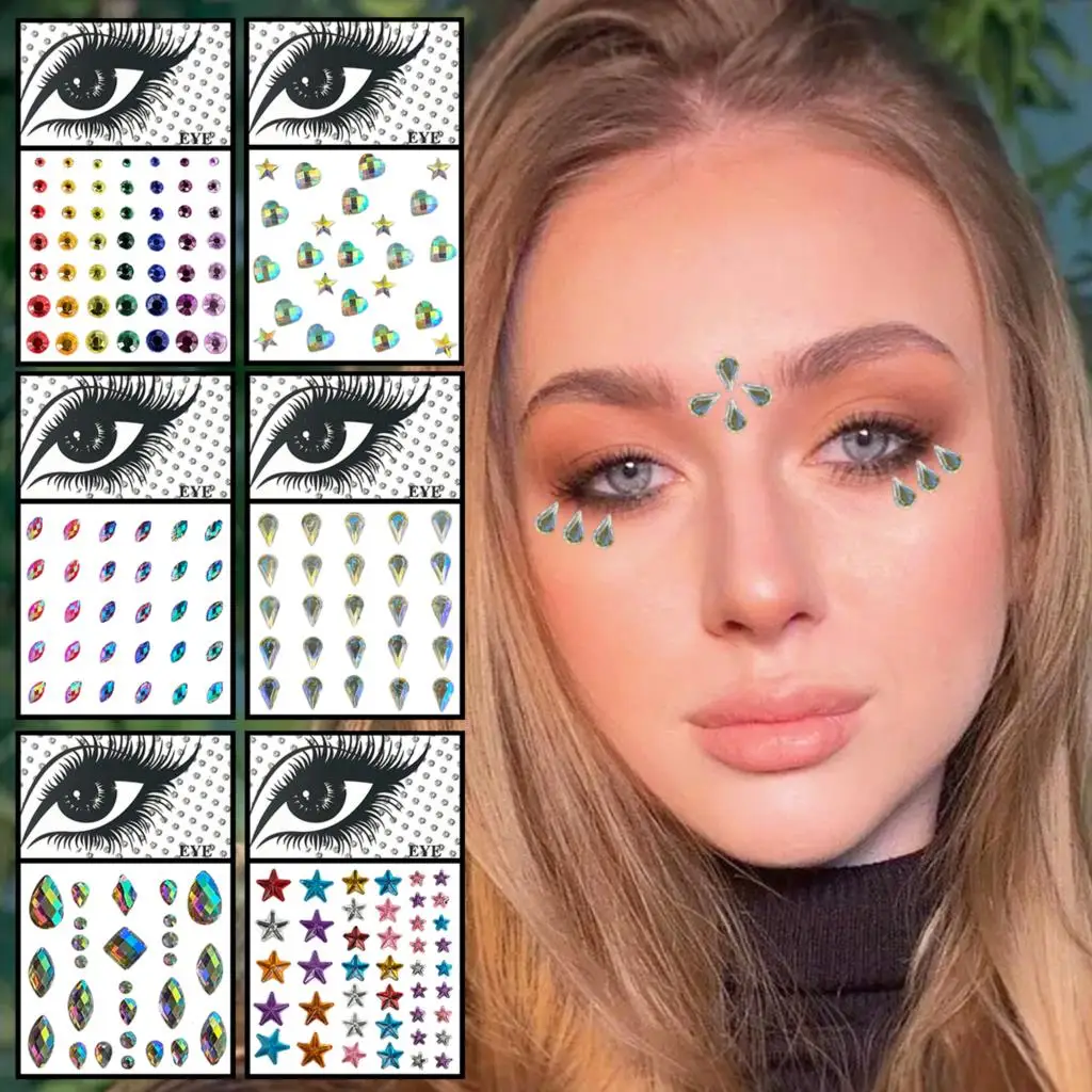 Star Heart Face Jewelry Temporary Tattoos Eye Eyeliner Rhinestones Tears Gems Makeup Sticker Bling Dots Jewels Halloween Rave 3d Aliexpress